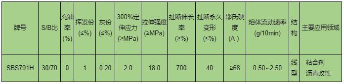 恒泰石化SBS791H質(zhì)量指標: