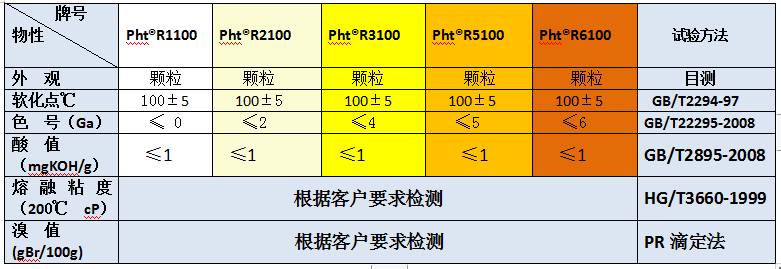 Pht?-R1100、Pht?-2100、Pht?-3100、Pht?-5100、、Pht?-6100精C5系列石油樹脂是適用于熱熔型路標(biāo)漆的改性石油樹脂。它能增強(qiáng)涂料的韌性、硬度及附著力,并形成平滑的漆面,而且通過添加助劑,使樹脂在四季中始終處在一種穩(wěn)定的狀態(tài),并和松香類樹脂、萜烯類樹脂、碳九石油樹脂混溶性佳。在高檔油漆復(fù)配中,可使油漆漆膜形成耐水、耐酸耐堿、耐紫外線、耐化學(xué)品的特性,并使外觀光亮度及干燥性都有明顯改善,其中Pht?-R1100、Pht?-R2100經(jīng)過氫化或半氫化的碳五石油樹脂,外觀顏色水白色,200度3個(gè)小時(shí)熱穩(wěn)定性不變色。是生產(chǎn)更高檔品質(zhì)的熱熔路標(biāo)涂料的助劑,性能更佳。